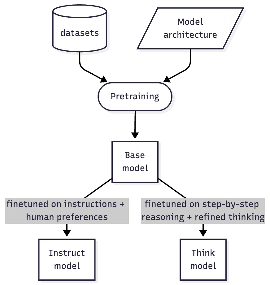Base, Instruct, and Think LLMs: What's the Difference?